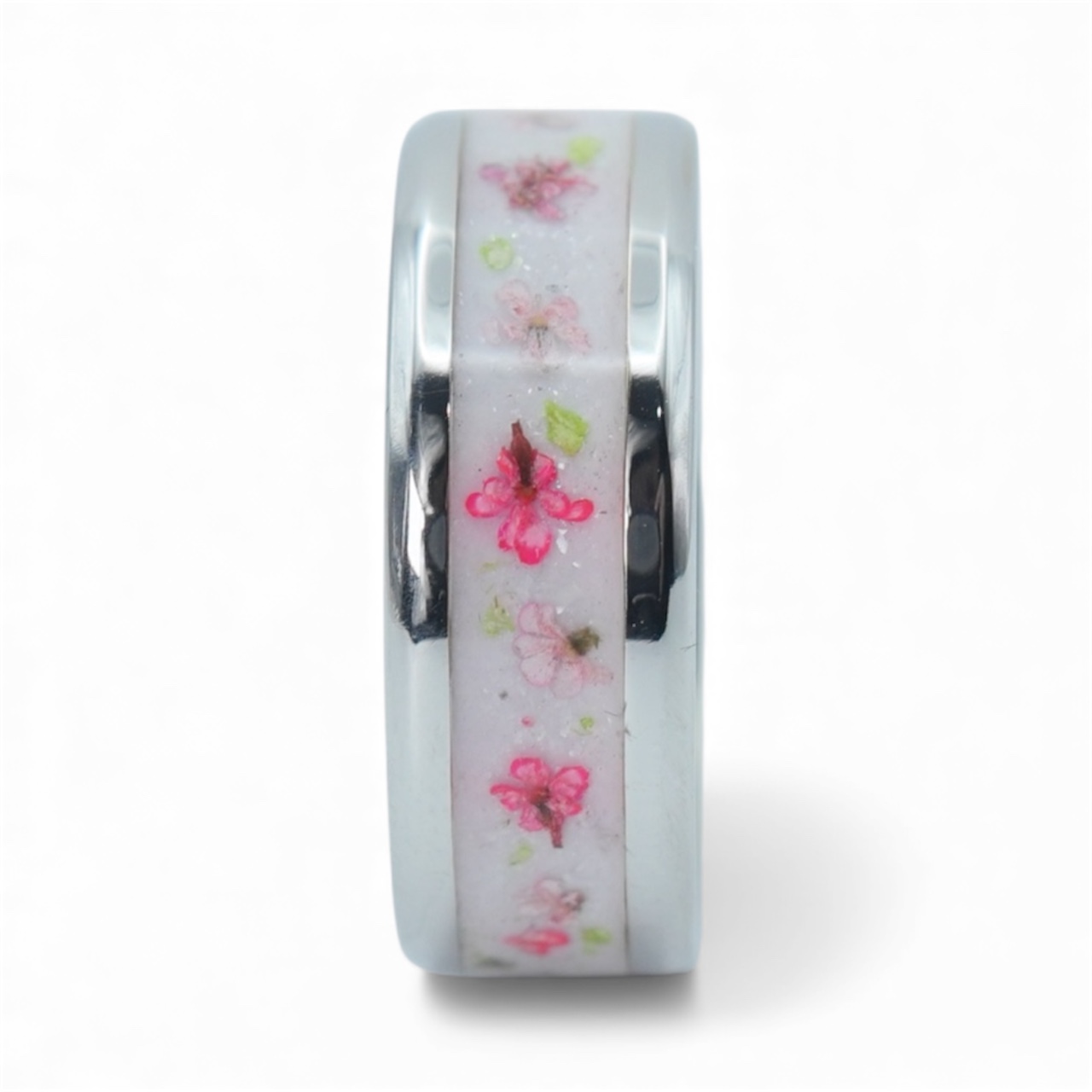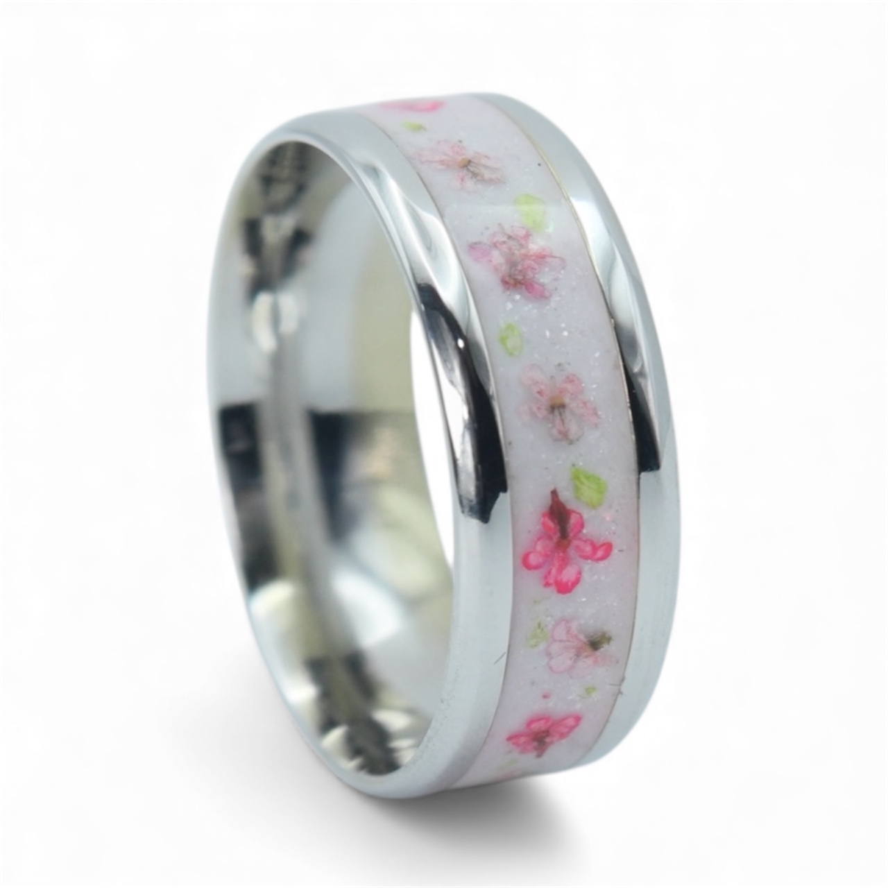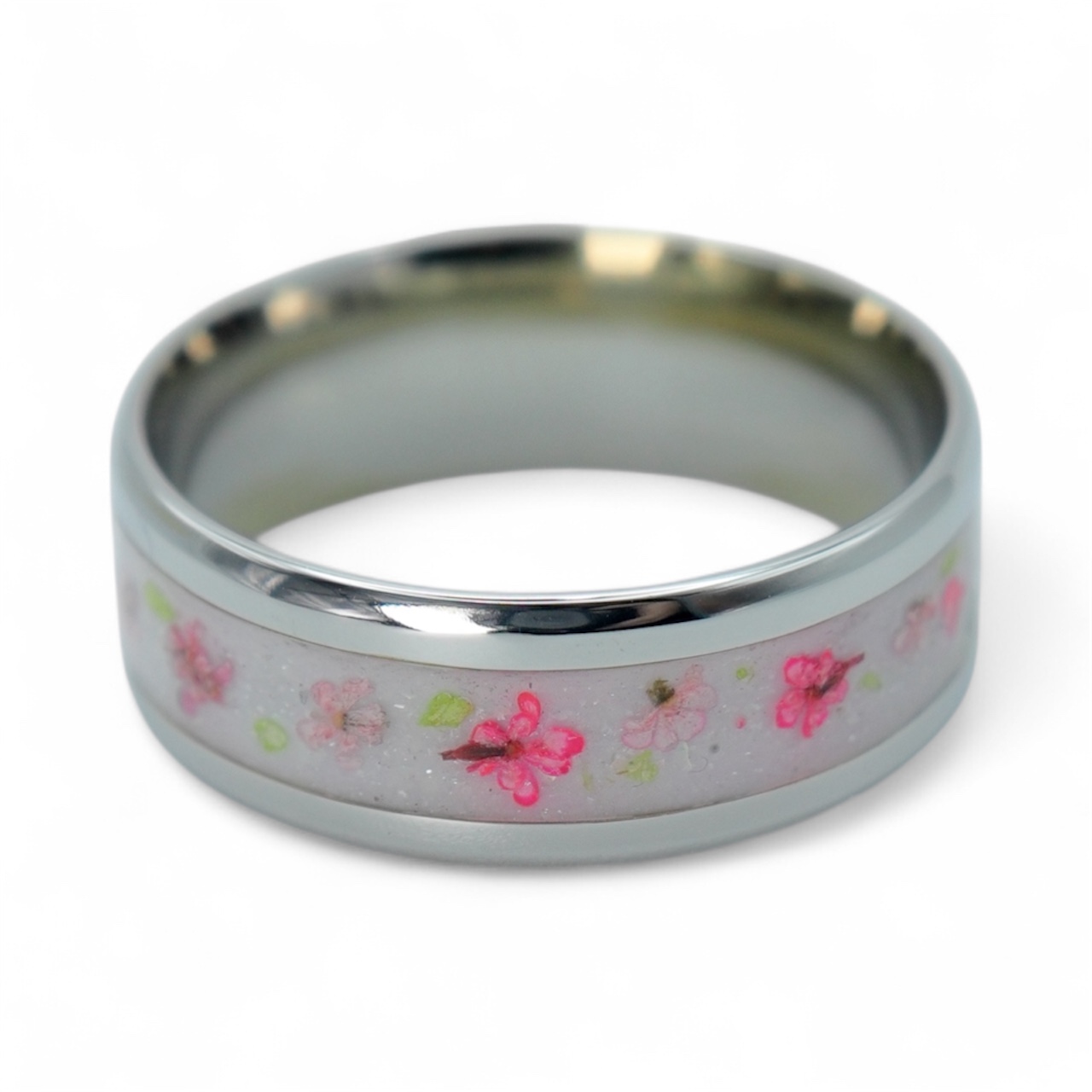 Bloom Keeper captures the beauty of moments preserved forever. This cobalt band holds real tiny pressed flowers set over a shimmering background, creating a miniature garden you can carry anywhere. Durable, vibrant, and full of meaning, it’s a reminder that even the smallest blooms can leave the biggest impact. Perfect for nature lovers, romantics, and anyone who wants a ring that tells a living story.
