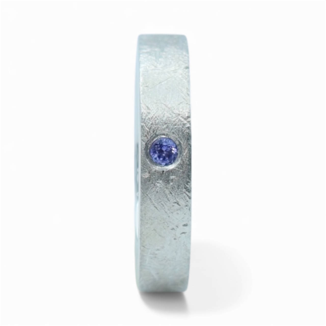 Crafted in luminous sterling silver and sculpted with a meteorite-inspired texture, Asteria evokes the quiet magic of a starlit night. At its center rests a brilliant blue topaz, shimmering like a piece of the open sky captured in stone. Its cool, celestial glow contrasts beautifully against the rugged silver surface, creating a ring that feels both ethereal and grounded.